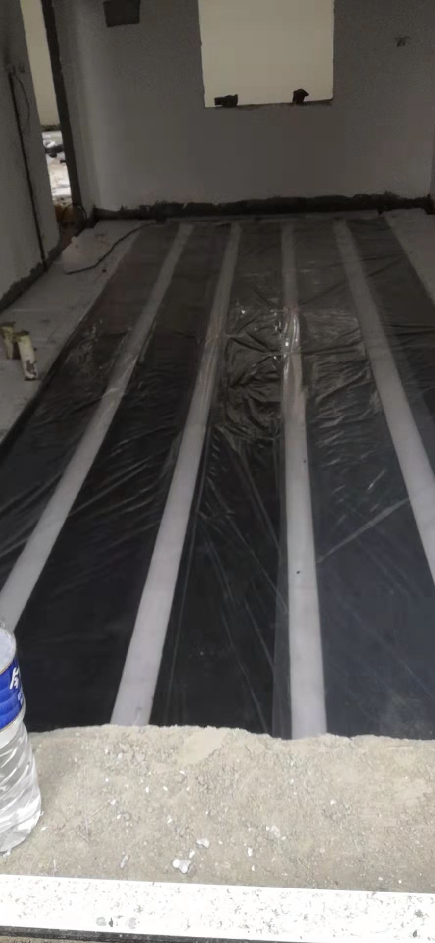 新型采暖技術、洗澡間更衣室電地暖安裝施工現(xiàn)場照片